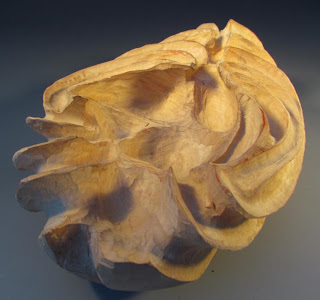 You may not see a lot of development as I am continuing to refine and deepen the carving in order to [produce a much greater depth of contrast and interaction between the lines and surfaces. I have decided that I want each and every surface/line to flow in compliment with the next but to be unique and different to all other curves/lines within the piece as a whole. Symmetry on this piece seems not to be the way it wants to go and the more organic the piece becomes the more I feel connected to it.